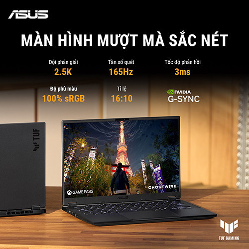 Màn hình là bộ phận người dùng tương tác nhiều nhất, và ASUS đã trang bị cho TUF A14 một tấm nền xuất sắc trong tầm giá. Với kích thước 14 inch tỉ lệ khung hình 16:10 và độ phân giải 2.5K (2560 x 1600), hay còn gọi là WQXGA, mật độ điểm ảnh (PPI) của máy đạt mức rất cao, khoảng 216 PPI. Ở khoảng cách nhìn thông thường (40-50cm), mắt người gần như không thể phân biệt được các điểm ảnh riêng lẻ, mang lại độ sắc nét tuyệt đối cho văn bản và chi tiết trong game.