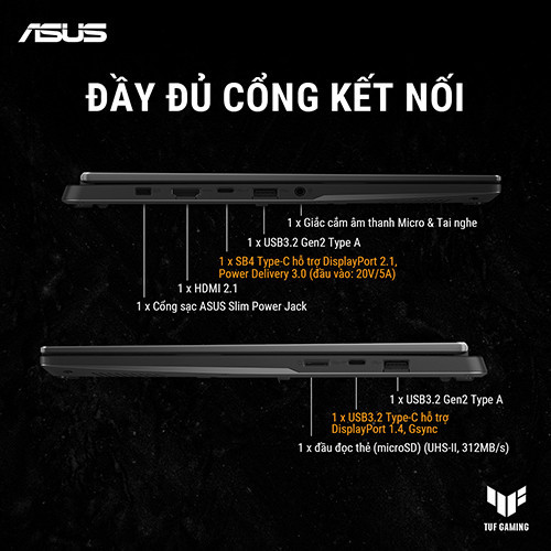 Máy khoác lên mình lớp sơn màu Jaeger Gray (Xám Jaeger) - một tông màu lấy cảm hứng từ các khí tài quân sự hiện đại. Màu xám này không đơn điệu mà có độ sâu, thay đổi nhẹ tùy theo góc chiếu sáng, và đặc biệt là khả năng chống bám vân tay tuyệt vời nhờ lớp phủ anodized trên bề mặt nắp lưng nhôm. Logo TUF không còn được dập nổi to bản như trước mà được khắc laser tinh xảo hoặc in chìm một cách khiêm tốn ở góc máy, tạo nên vẻ ngoài chuyên nghiệp, lịch lãm.