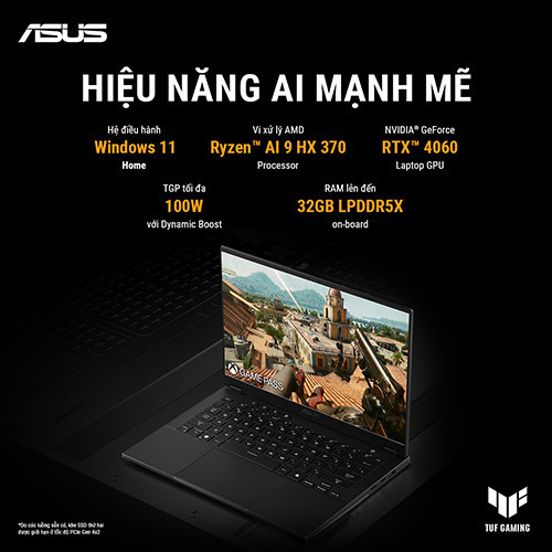 Điểm sáng lớn nhất của ASUS TUF A14 nằm ở CPU Ryzen AI 9 HX 370 – thế hệ chip mới tích hợp nhân AI, cho khả năng xử lý đa nhiệm, render, gaming và ứng dụng AI vượt trội. Kết hợp cùng RTX 4060 8GB (TGP cao), máy cân tốt mọi tựa game AAA, đồng thời tối ưu cho các phần mềm đồ họa, dựng video, 3D.