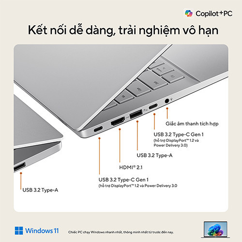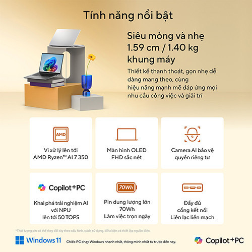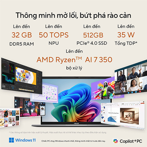Điểm khác biệt lớn nhất của dòng chip Ryzen AI 300 series chính là bộ xử lý thần kinh (NPU) XDNA 2 tích hợp. Với sức mạnh xử lý lên đến 50 TOPS (nghìn tỷ phép tính mỗi giây), NPU này giúp Laptop ASUS Vivobook S14 M3407KA-SF032WS đạt chuẩn Copilot+ PC của Microsoft.