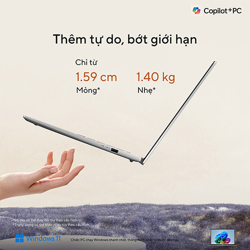 Laptop ASUS Vivobook S14 M3407KA-SF032WS là mẫu laptop thế hệ mới hướng tới người dùng hiện đại: học sinh sinh viên, nhân viên văn phòng và designer cần một thiết bị gọn nhẹ – mạnh mẽ – màn hình đẹp. Sở hữu vi xử lý Ryzen AI 7 350, RAM lên tới 32GB, cùng màn hình OLED FHD sắc nét, đây là lựa chọn lý tưởng cho học tập, làm việc và sáng tạo nội dung dài hạn.